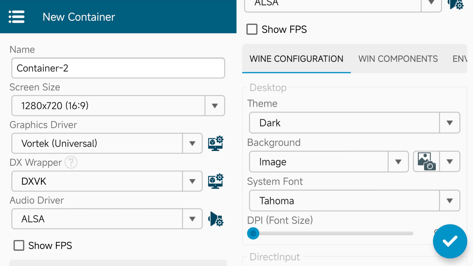Bu işlemden sonra, temel olarak bir Windows işletim sistemini Android cihazınıza kurmuş olacaksınız. Oluşturduğunuz Container’ın sağ tarafındaki üç noktaya tıklayarak özelleştirme yapabilirsiniz. Burada yapacağınız ayarlar, en optimize edilmiş ayarlardır; ancak burada Windows sürümünü değiştirebilir, çözünürlük, FPS görüntüleme ve CPU ayarlarınızı düzenleyebilirsiniz.