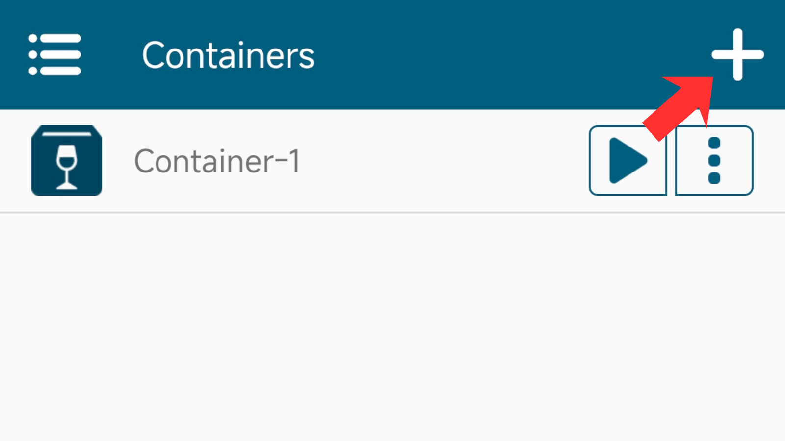 • Daha sonra, uygulamaya giriş yaparak sağ üst köşedeki + butonuna tıklayarak standart bir Container oluşturmalısınız.