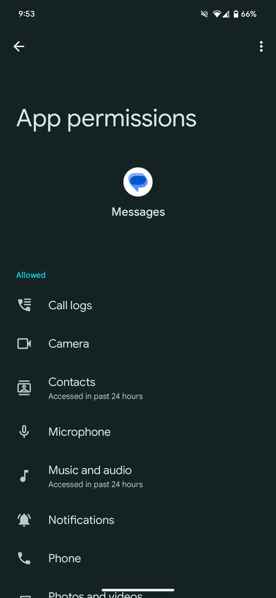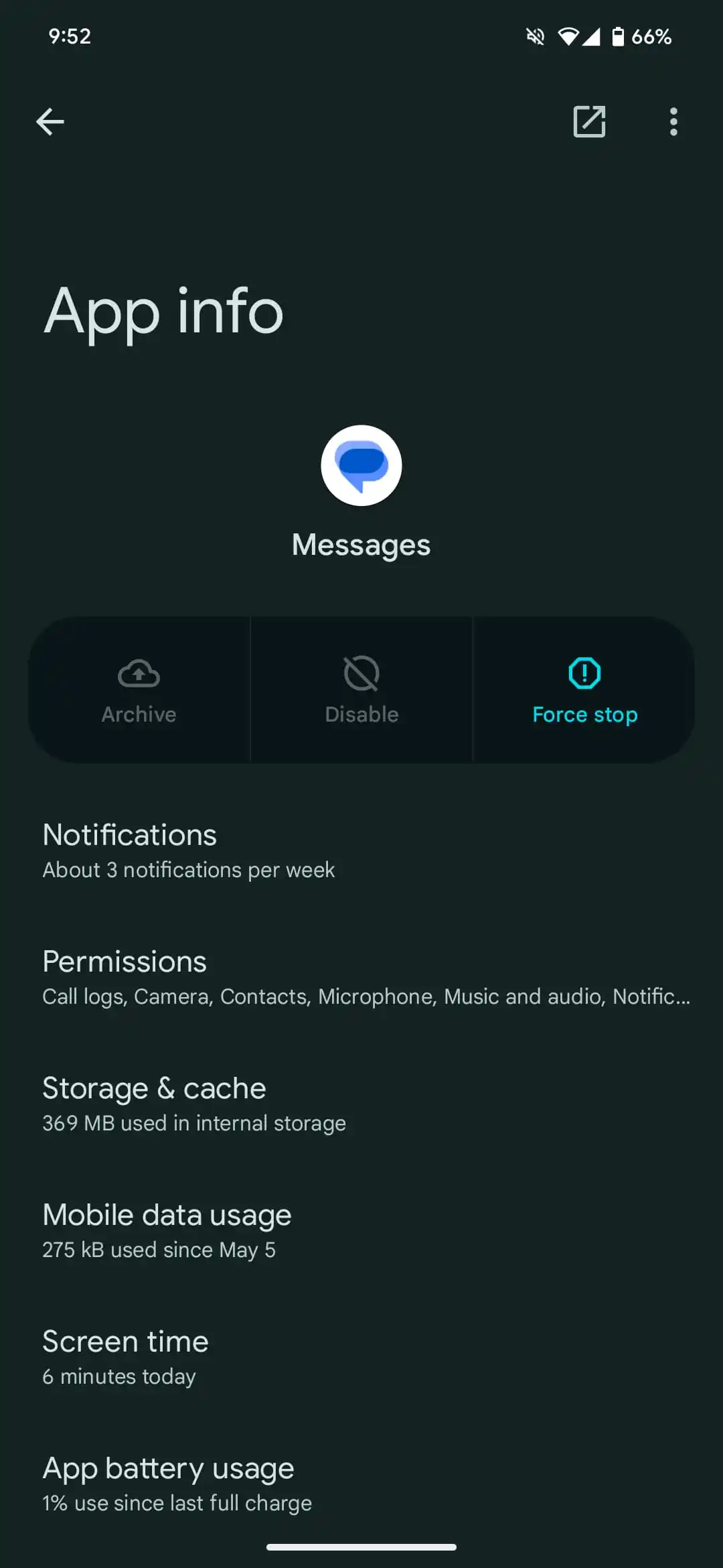 - Google Mesajlar uygulamasının bilgi ekranını açın.