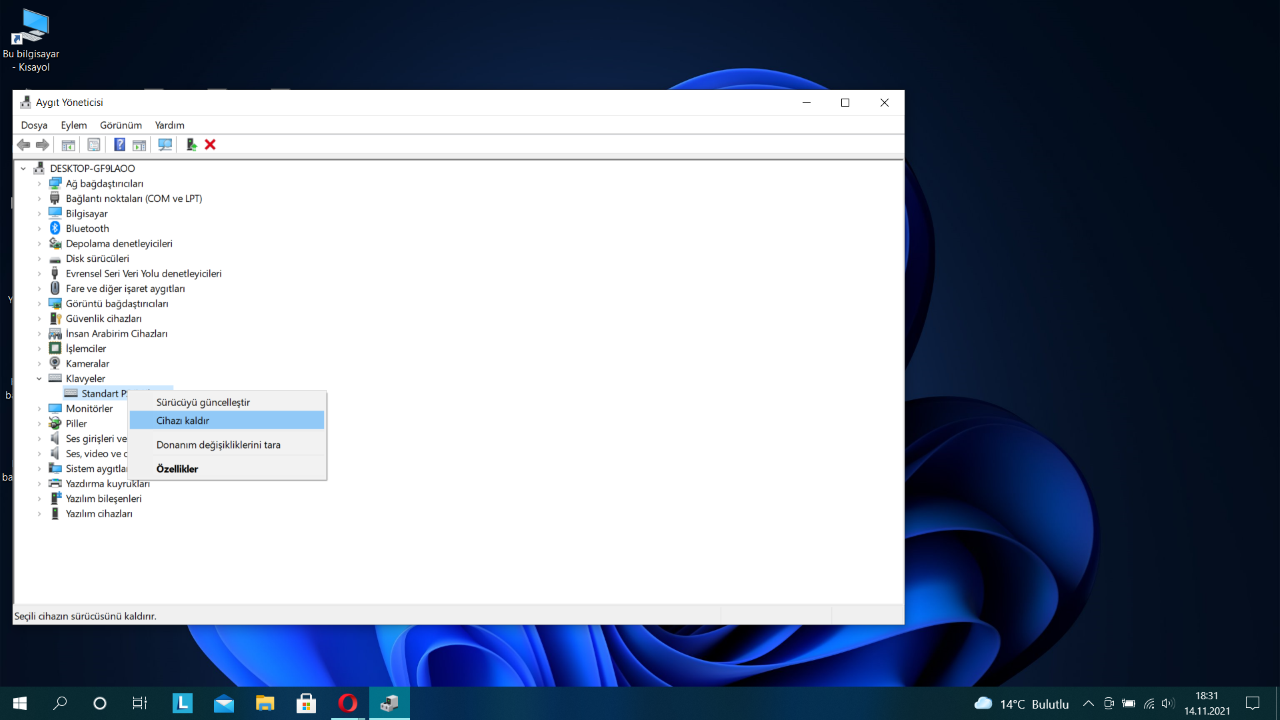 Ardından klavyeler seçeneğine tıklayın. Burada yanında sarı bir ünlem işareti olabilecek herhangi bir girişi kontrol edin. Klavyenizi sağ tıklayıp “cihazı kaldır” seçeneğine tıklayın. Daha sonra bilgisayarınızı yeniden başlatın; böylece sistem genel klavye sürücülerini otomatik olarak yükleyecektir.