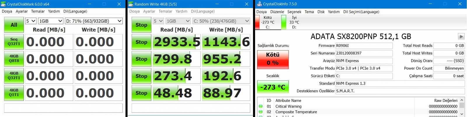Crystal Disk Mark ve Info