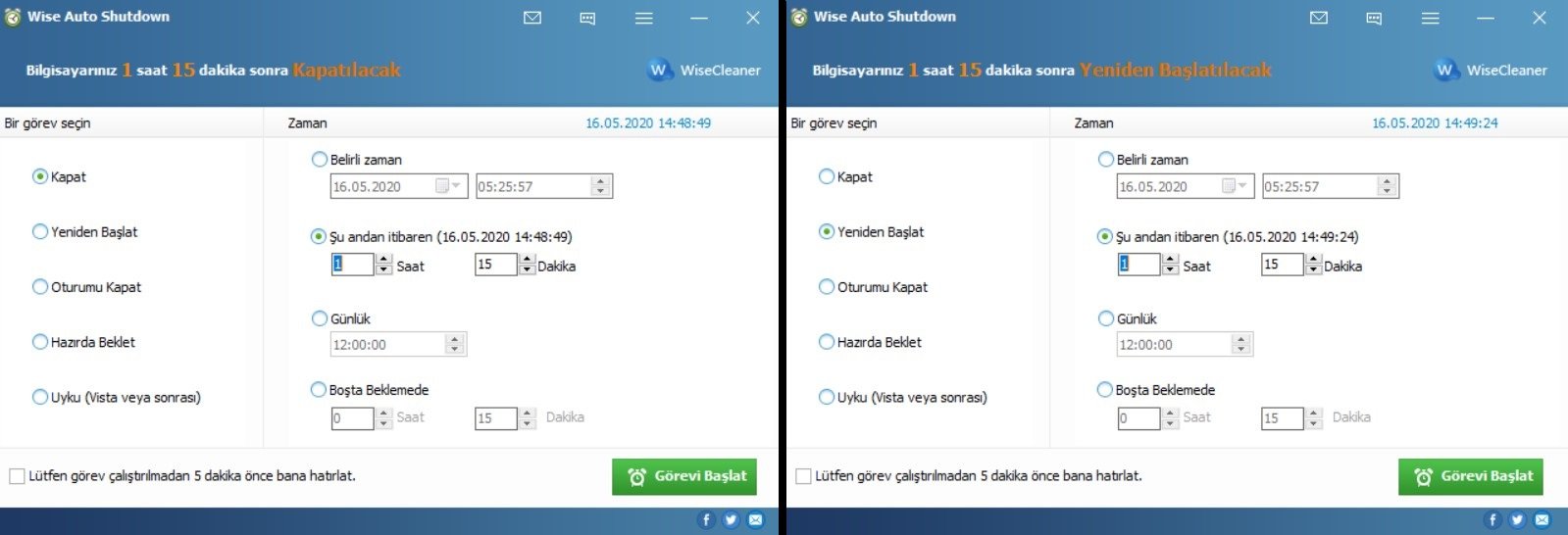 Listemizdeki son önerimiz Wise Auto Shutdown. Bu program sayesinde bilgisayarınızı kapatmak veya diğer oturum işlemlerini zamanlayabilirsiniz.