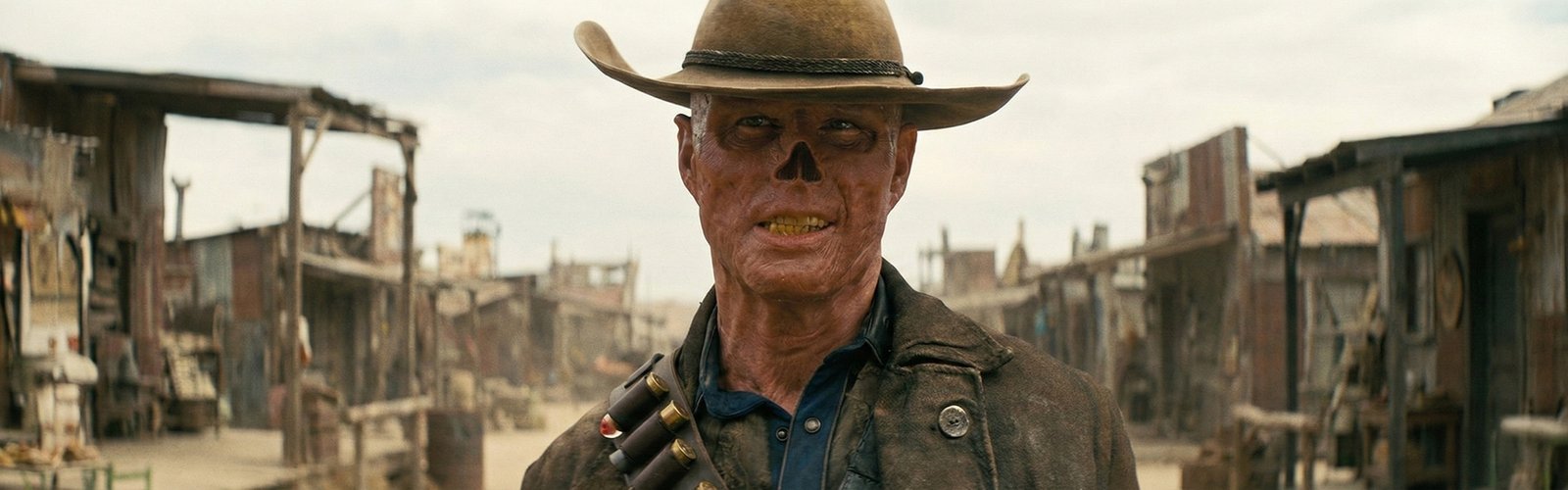 Dizinin en etkileyici karakter gelişimini yaşadığımız isim, Walton Goggins’in canlandırdığı Ghoul. Hikâyemiz, onun henüz insan olduğu zamanlarda, ünlü aktör Cooper Howard olarak bir çocuk partisinde kovboy şovu yapmasıyla başlıyor. Ancak eğlence, nükleer bombaların düşmesiyle bir kaosa dönüşüyor; Cooper, kızını kucakladığı gibi at sırtında kıyametten kaçmaya çalışıyor.